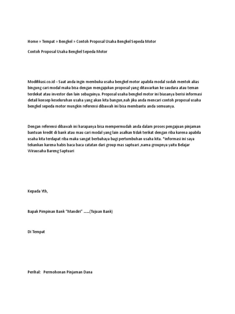 Desa pasi lancang adalah salah satu desa yang berada di wilayah kecamatan kb.tanjong kabupaten pidie propinsi aceh, jumlah penduduk desa pasi lancang 2.754 jiwa yang terdiri dari laki. Dalam pembuatan proposal tidak harus kaku. Akan tetapi lebih kepada penekanan perencanaan dan rancangan bisnis yang akan dijalankan. Melihat lebih jauh contoh proposal usaha atau bisnis bukan hanya sekedar bahan untuk mencari sumber pendanaan semata. Semakin bagus cover maka akan semakin memperlihatkan bahwa anda/kelompok usaha anda serius menekuni usaha ini. Contoh proposal usaha kuliner makanan dan minuman khas dan tradisional. Adapun tujuan proposal ini yaitu untuk memperkenalkan lebih detail tentang produk kami dan menambah wawasan tentang makan khas malang yaitu donat. Pengertian proposal bisnis yaitu dokumen penjualan yang berisi informasi standar tentang cakupan proyek, produk yang. Bantuan modal usaha pengembangan perikanan budidaya. Topi proposal yang menggunakan bahasa yang mudah diterima investor. Struktur organisasi dan tanggung jawab. Sehingga kita akan membutuhkan sumber dana sponsor untuk menyelenggarakan kagiatan untuk menunjang usaha tersebut. Kerangka contoh proposal kerjasama usaha.